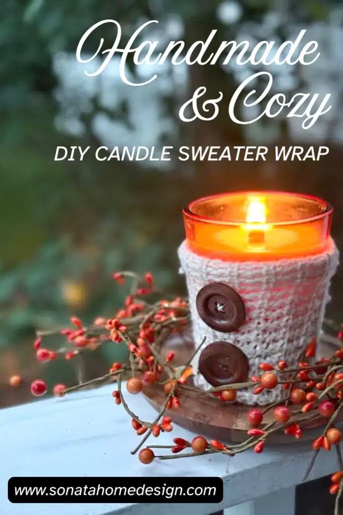 Outside it may still be in the 90s by me, but inside, it's sweater weather! Sonata Home Design has a great way to repurpose an old one to make a Cozy Candle Wrap!