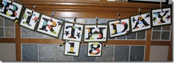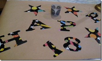 Cut out the letters w/ my Cricut using balloon patterned paper and punched some stars out.